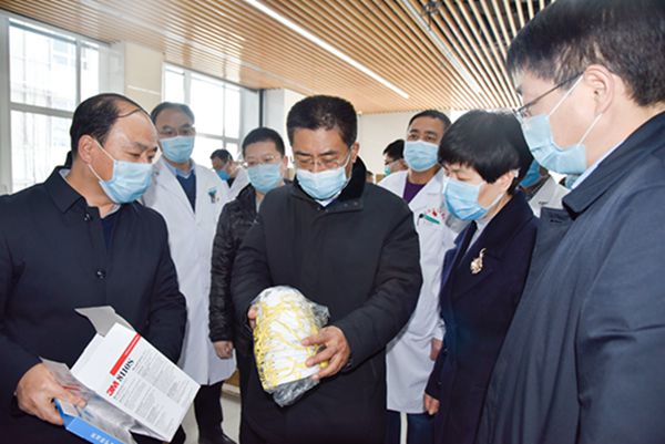 2月4日下午,长治市委书记孙大军、副市长景普秋一行到我院看望疫情一线的医务人员。首先到我院二期工程楼一楼,察看了设立在此处的长治市新型冠状病毒感染肺炎疫情防控应急物资储备库,详细询问了应急物资储备与供应情况。