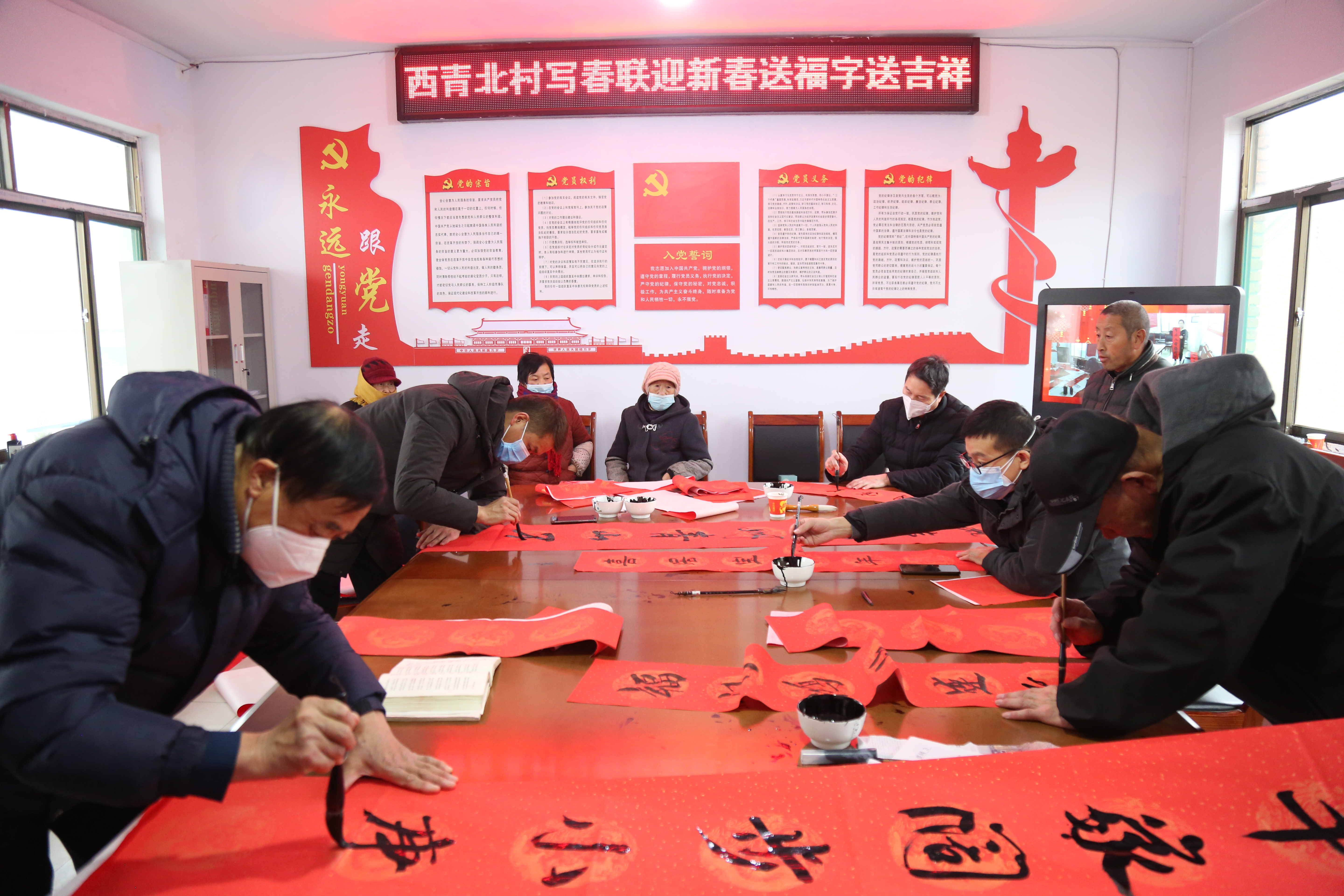 1月13日,随着新年的脚步越来越近,为进一步营造浓厚节日氛围,传承弘扬中华优秀传统文化,我院驻西青北村工作队,邀请书法爱好者到村为全体村民写春联送福字,把院党委对西青北村民的关心和温暖送到每家每户。