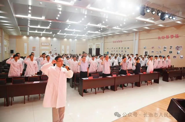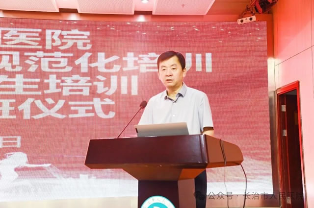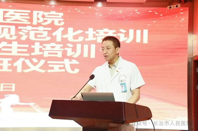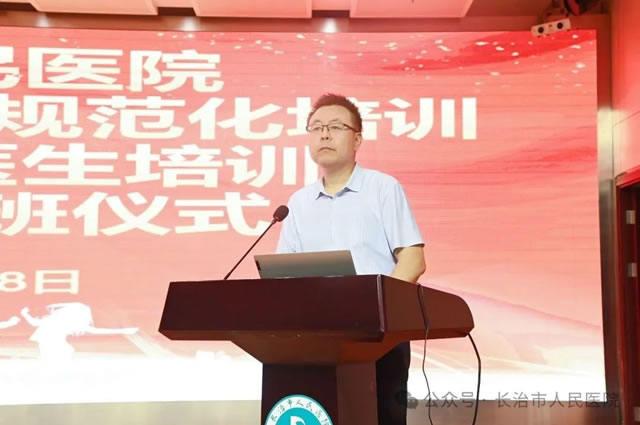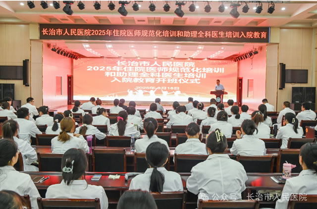 8月18日,长治市人民医院2025年住院医师规范化培训和助理全科医生培训入院教育开班仪式顺利举行,标志着新一届93名医学新生力量正式开启规范化培训征程。党委书记胡文庆、副院长陈锦华,科教科主任申雪峰,科教督查专员杜永刚,指导老师代表、外科专业基地主任、胃肠外科主任崔鹏,以及全体新住培医师共同参加开班仪式。